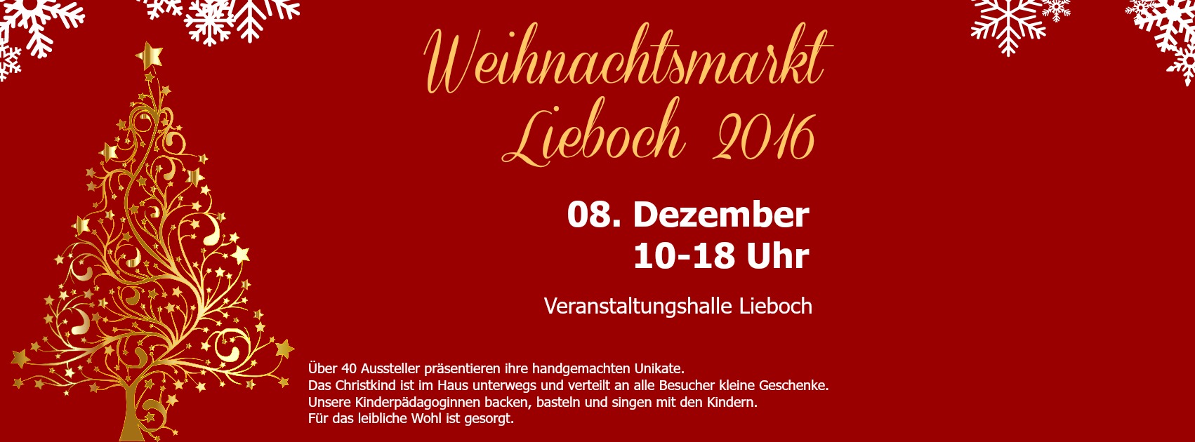 Der Liebocher Weihnachtsmarkt in der Veranstaltungshalle in Lieboch. Heuer am 8. Dezember von 10 – 18h. Besucht ihr uns dort? https://www.facebook.com/events/243591166057438/